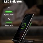 With its sleep-friendly adaptive light feature, this wireless charger is perfect for use on your nightstand or desk. Simply place your device on the charging station and watch as it quickly charges without the hassle of cords or plugs.